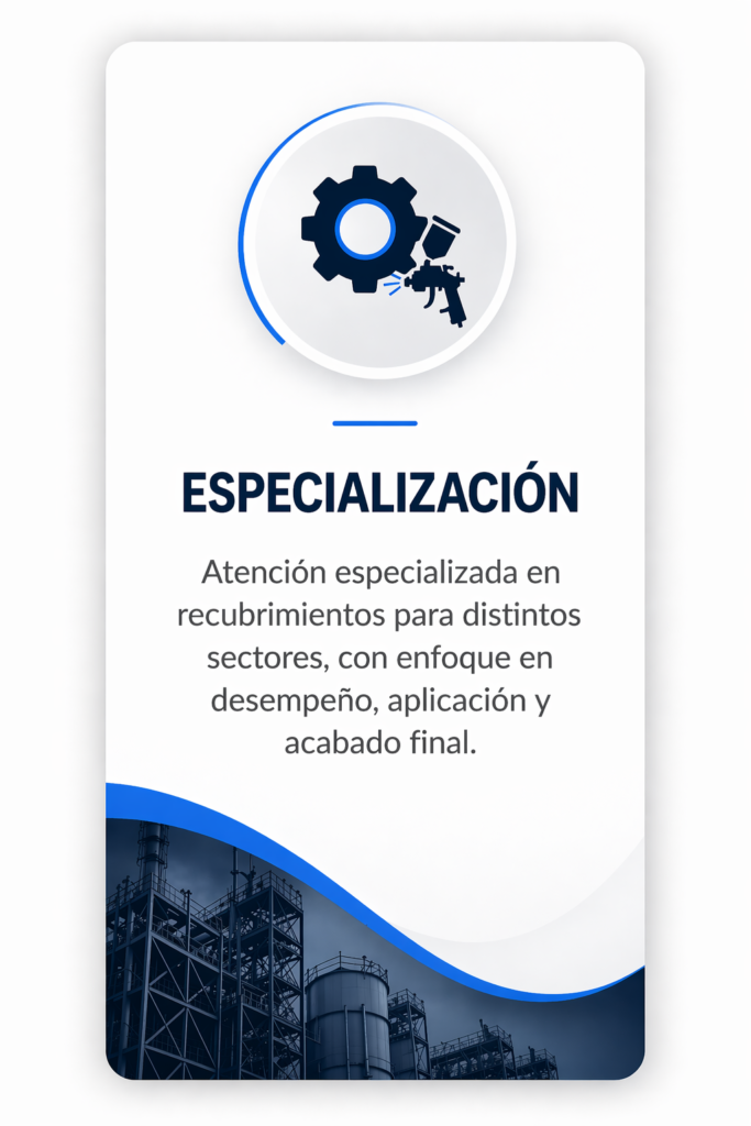 Con el tiempo, y gracias a la experiencia adquirida en la aplicación y manejo de recubrimientos, la empresa evolucionó hacia un enfoque comercial y técnico más especializado, fortaleciendo su capacidad para ofrecer soluciones dirigidas a diferentes industrias, entre ellas la automotriz, industrial, arquitectónica y otros sectores productivos.